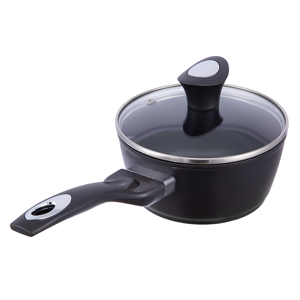 16*7,5cm musta tarttumaton alumiininen kattila lasikannellisella JY-BF29-2-1675