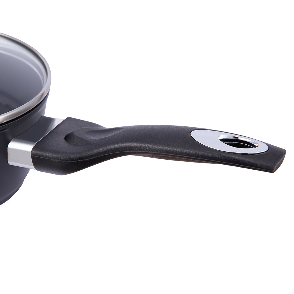 KOTI / TUOTE / KASARI / Kova-anodisoiva alumiininen kattila / 16*7,5cm musta tarttumaton alumiininen kattila lasikannellisella JY-BF29-2-1675