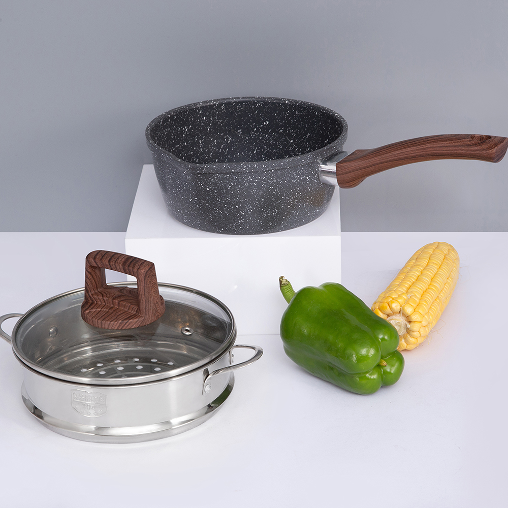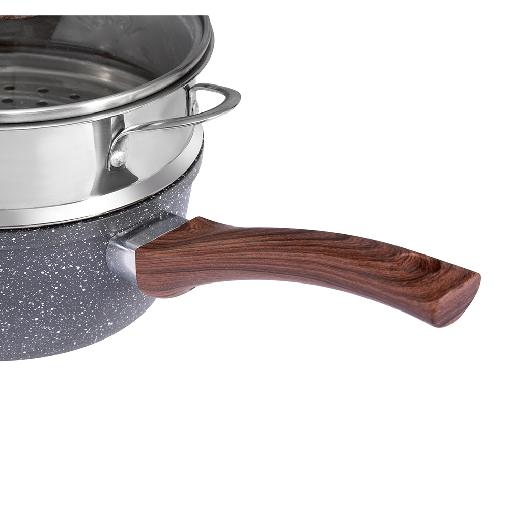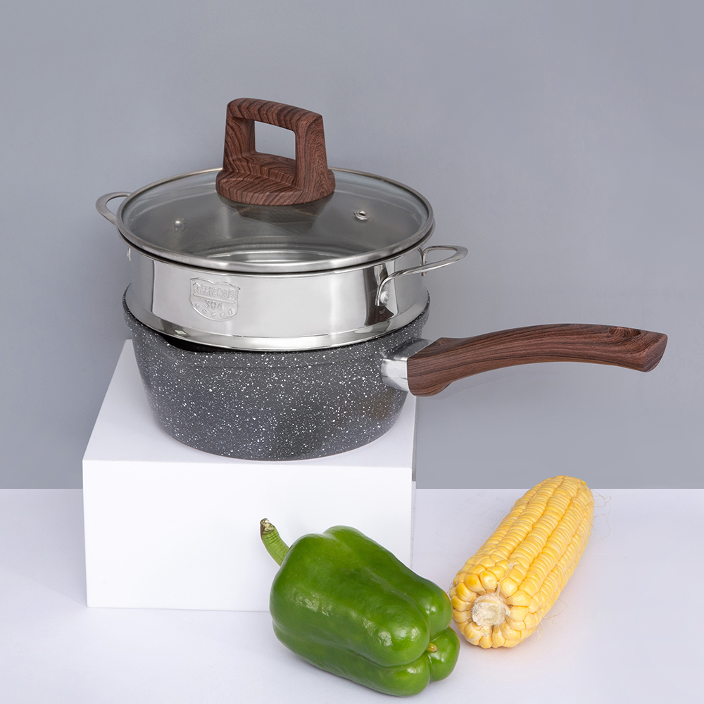 Se on valmistettu alumiinista modernilla kolmikerroksisella pohjateknologialla (ruostumaton teräs alumiini ruostumaton teräs), joka jakaa lämmön tasaisesti, mikä varmistaa nopeamman kypsennyksen ja pitää ruoan lämpimänä pidempään. Sen halkaisija on 18 cm, mikä sopii erinomaisesti erilaisiin keittiötehtäviin.