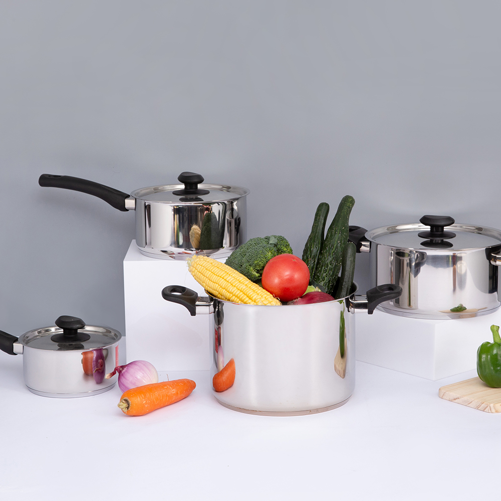 Tuotekuvaus: Ruostumattomasta teräksestä valmistettu keittoastiasetti