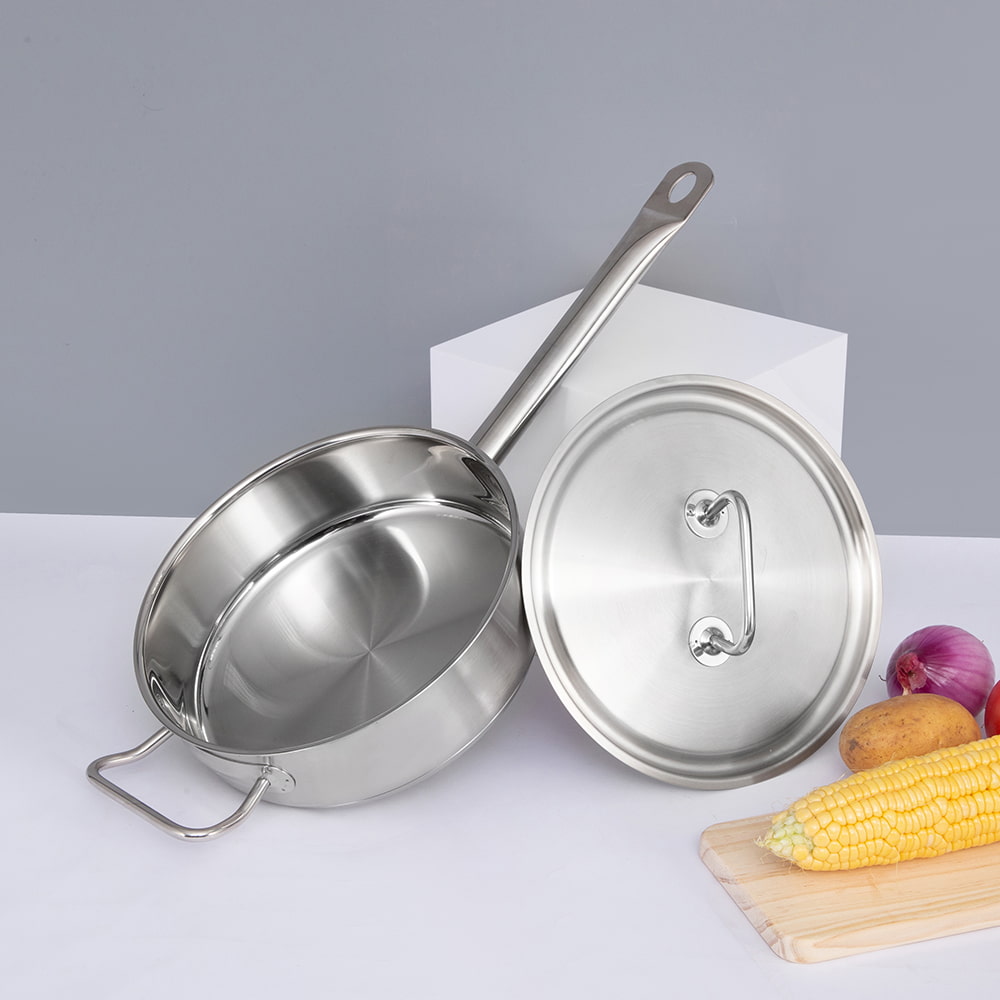 Tuotekuvaus: Ruostumattomasta teräksestä valmistettu paistinpannu ruostumattomasta teräksestä valmistetulla kannella