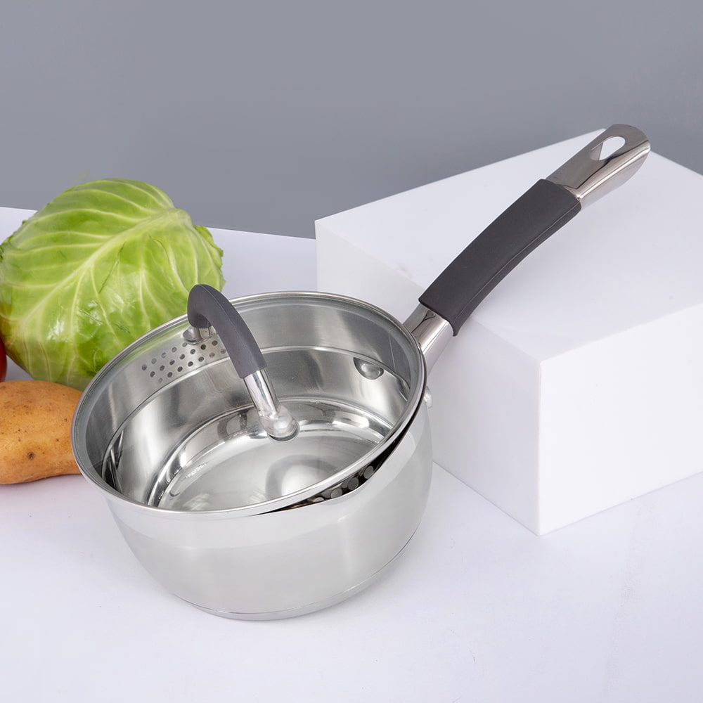 Se on valmistettu ruostumattomasta teräksestä modernilla kolmikerroksisella pohjatekniikalla (ruostumaton teräs alumiini ruostumaton teräs), joka jakaa lämmön tasaisesti, mikä varmistaa nopeamman kypsennyksen ja pitää ruoan lämpimänä pidempään. Sen halkaisija on 16 cm, mikä sopii erinomaisesti erilaisiin keittiötehtäviin.