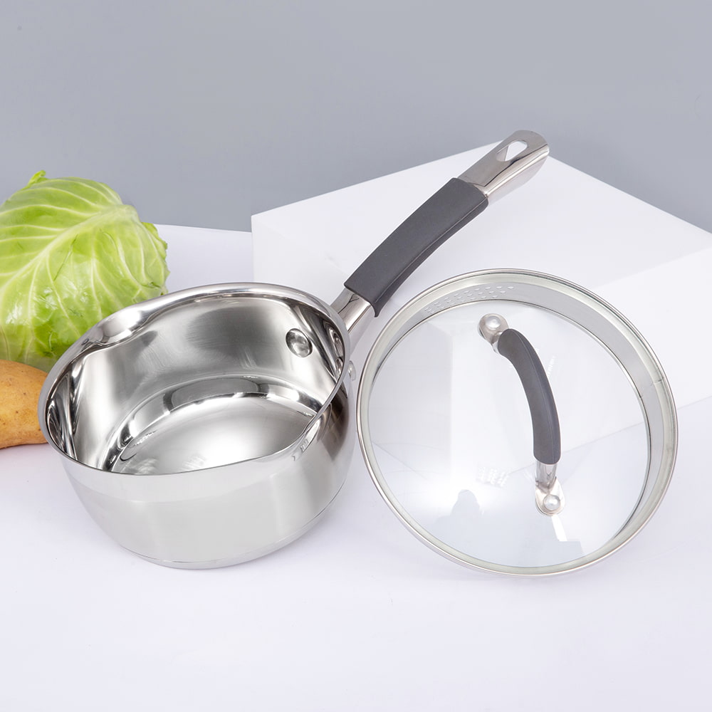 KOTI / TUOTE / KASARI / SUS304 ruostumattomasta teräksestä valmistettu kattila / 16*7,5cm Yksi pitkäkahvainen lasikannen kattila JY-1675DZ