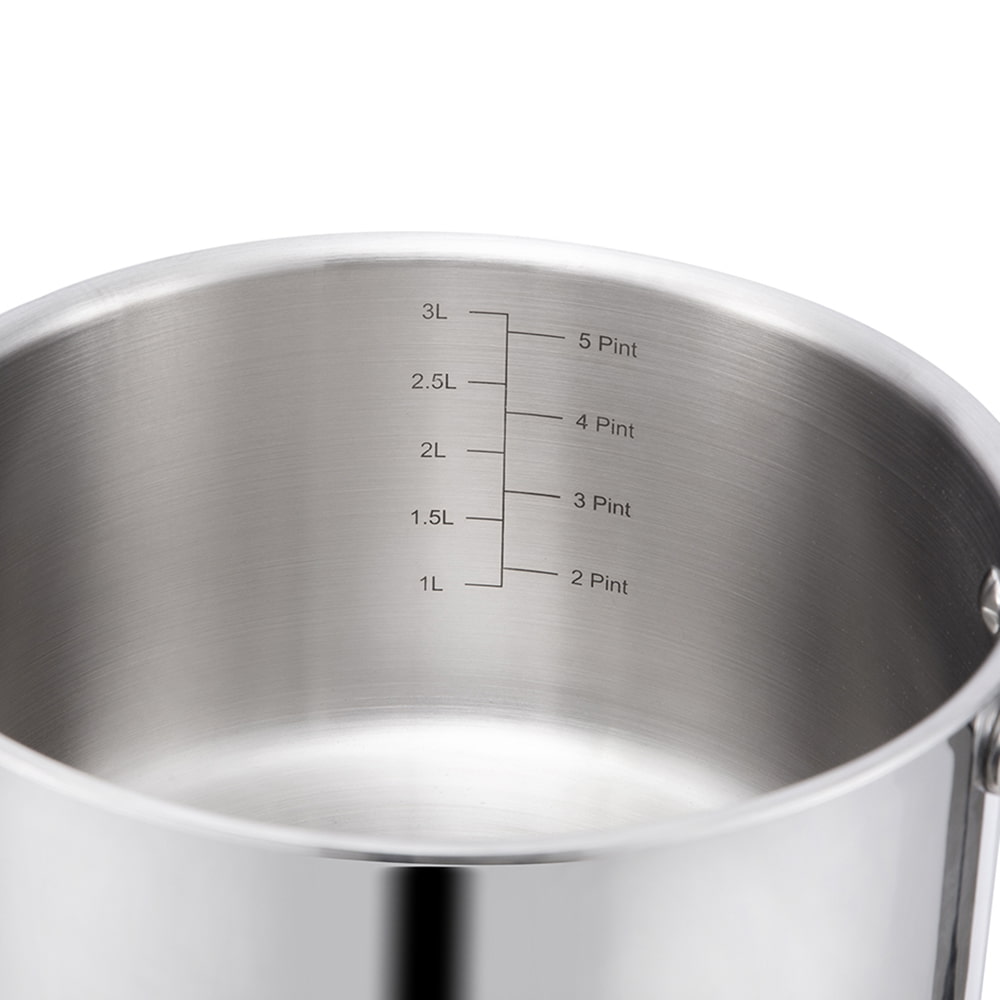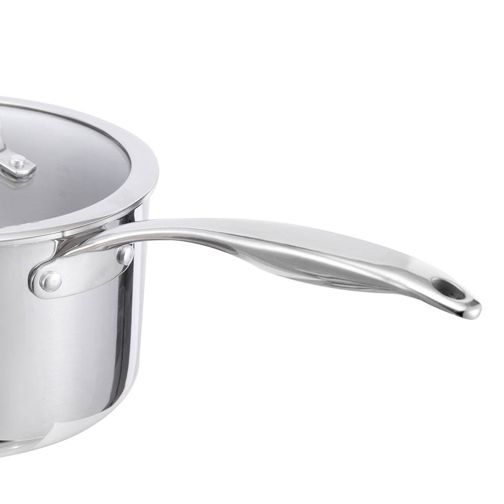 Se on valmistettu ruostumattomasta teräksestä modernilla kolmikerroksisella pohjatekniikalla (ruostumaton teräs alumiini ruostumaton teräs), joka jakaa lämmön tasaisesti, mikä varmistaa nopeamman kypsennyksen ja pitää ruoan lämpimänä pidempään. Sen halkaisija on 18 cm, mikä sopii erinomaisesti erilaisiin keittiötehtäviin.